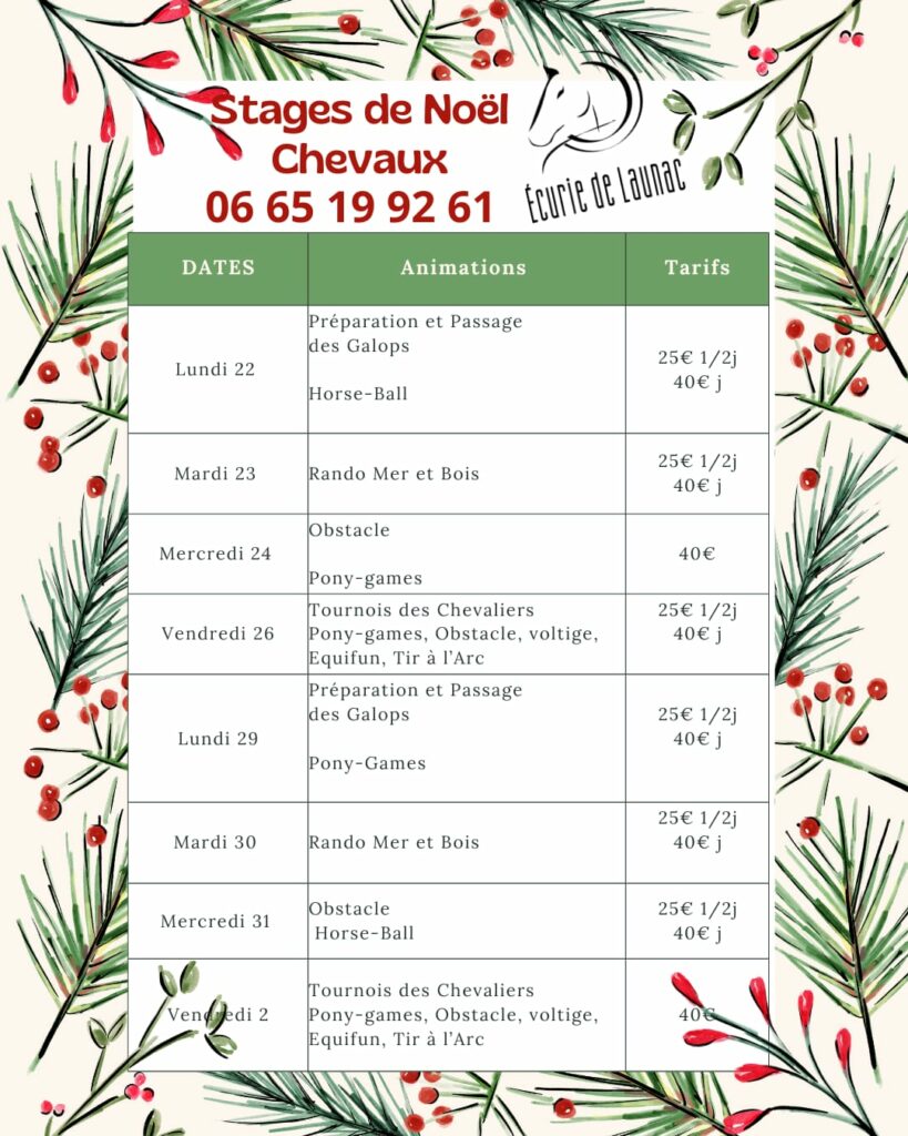 stages pour les vacances de noel
